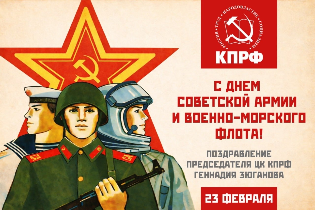 Поздравление лидера КПРФ и Народно-Патриотических сил России Г.А. Зюганова с Днем Советской Армии и Военно-Морского Флота.